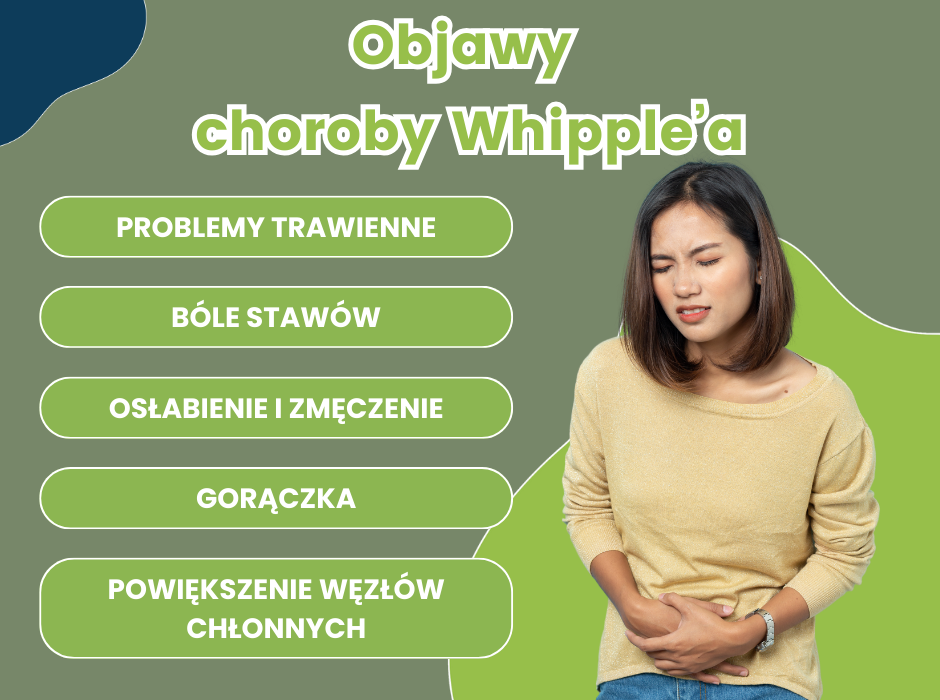 Choroba Whipple’a jest podstępna, ponieważ jej objawy mogą być bardzo różnorodne i przypominać wiele innych schorzeń. To sprawia, że diagnoza bywa trudna i często opóźniona.