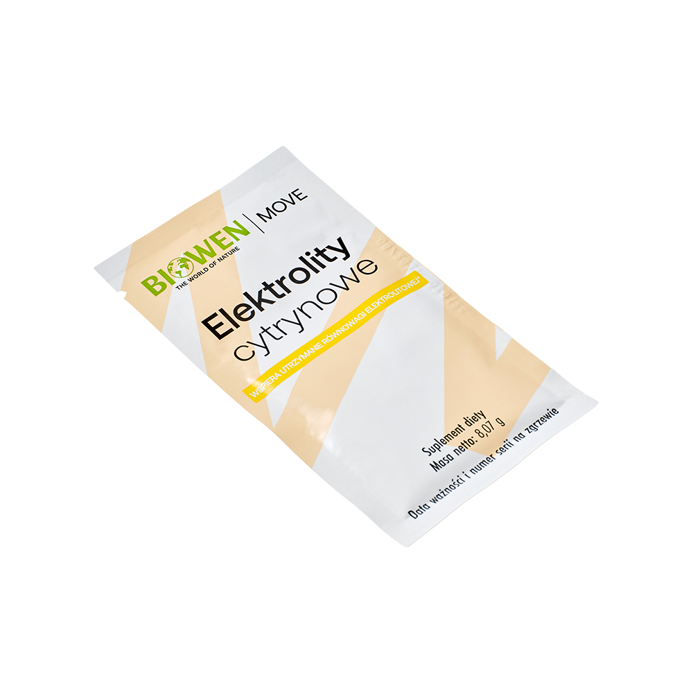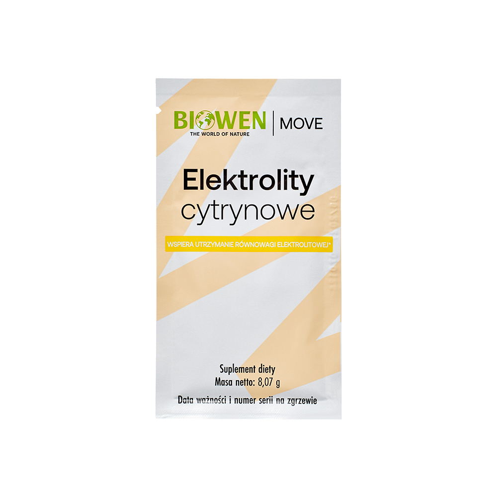 Utrzymanie odpowiedniego poziomu elektrolitów to podstawa sprawnego działania organizmu. Wysiłek fizyczny, stres czy wysoka temperatura zwiększają ich utratę, co może skutkować zmęczeniem i spadkiem wydolności. Biowen opracował elektrolity o smaku cytrynowym w poręcznych saszetkach, które pozwalają szybko uzupełnić minerały i składniki wspierające energię. Jedna saszetka to pełna porcja – wystarczy rozpuścić w wodzie, aby otrzymać orzeźwiający napój wspierający mięśnie, serce i układ nerwowy.