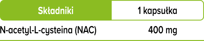 N-acetylo-L-cysteina (NAC), otoczka kapsułki: hydroksypropyloceluloza.