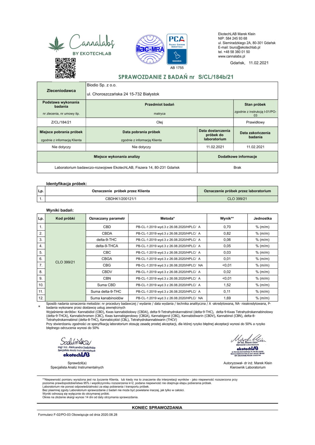 Olejek CBD 1% jest zbadany. Na naszej stronie znajdziesz potwierdzenie zawartości fitoskładników, terpenów oraz badanie na metale ciężkie.