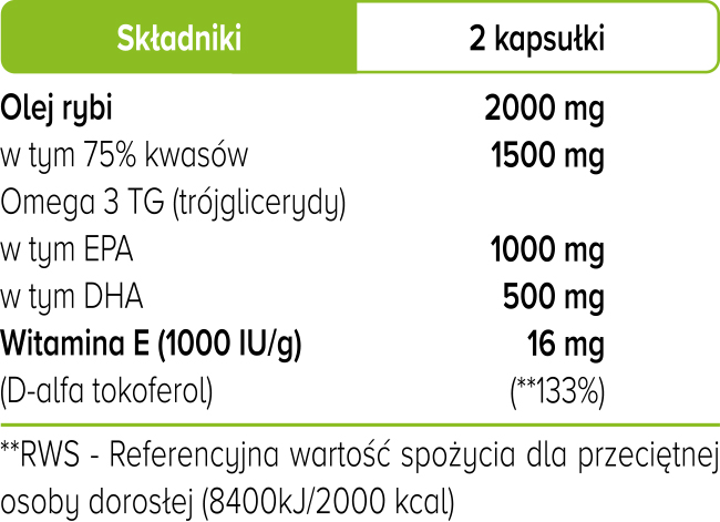 - porcja to 1000 mg EPA i 500 mg DHA,