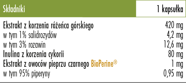 - 1 kapsułka to aż 420 mg różenica górskiego,
