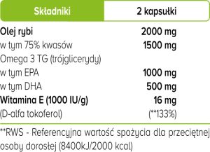 porcja to 1000 mg EPA i 500 mg DHA,